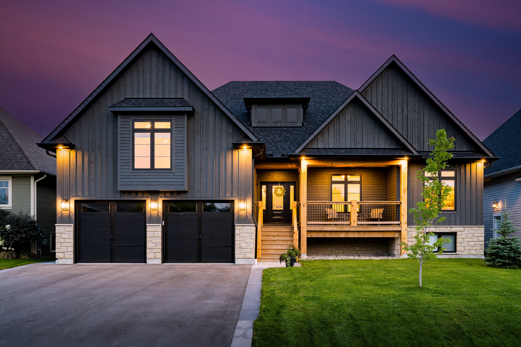 Experience the charm of a unique floor plan that makes this golf course bungalow both welcoming and exceptional. With over 2,200 square feet of thoughtfully designed living space, the home feels even more expansive thanks to its spacious front entrance and breathtaking great room. A stunning 14-foot-high stone feature wall anchors the open-concept living area, complemented by an elegant linear fireplace that adds warmth and drama. Every design detail has been carefully curated by an interior designer to create a warm, earthy palette, featuring two-tone kitchen cabinetry, white oak flooring, and Benjamin Moore paint throughout. Stylish, modern lighting selections further elevate the home's custom aesthetic. The great room opens to a covered backyard retreat -- an ideal space to relax and take in the tranquil views of the manicured greens and mature trees of the Meaford Golf Course. Solid wood, three-panel interior doors -- extra tall and painted black -- are paired with upgraded gold-tone hardware, adding a refined touch throughout. The generous primary bedroom offers sliding door access to the backyard and golf course views. Two additional bedrooms -- both bright and spacious -- share a sleek four-piece bathroom. One of these rooms is perfectly suited for use as a home office or cozy den. All bathrooms feature high-end, contemporary finishes. Skylights in the kitchen bring in additional natural light, while pot lights throughout ensure a bright and welcoming atmosphere. A custom mudroom off the garage offers practical, organized storage. The exterior showcases a striking blend of wood and cultured stone, with a stamped concrete driveway leading to modern windowed garage doors. Comfort is top of mind with hydronic in-floor heating in both the garage and lower level. Date Posted: 27-Aug-2025 -